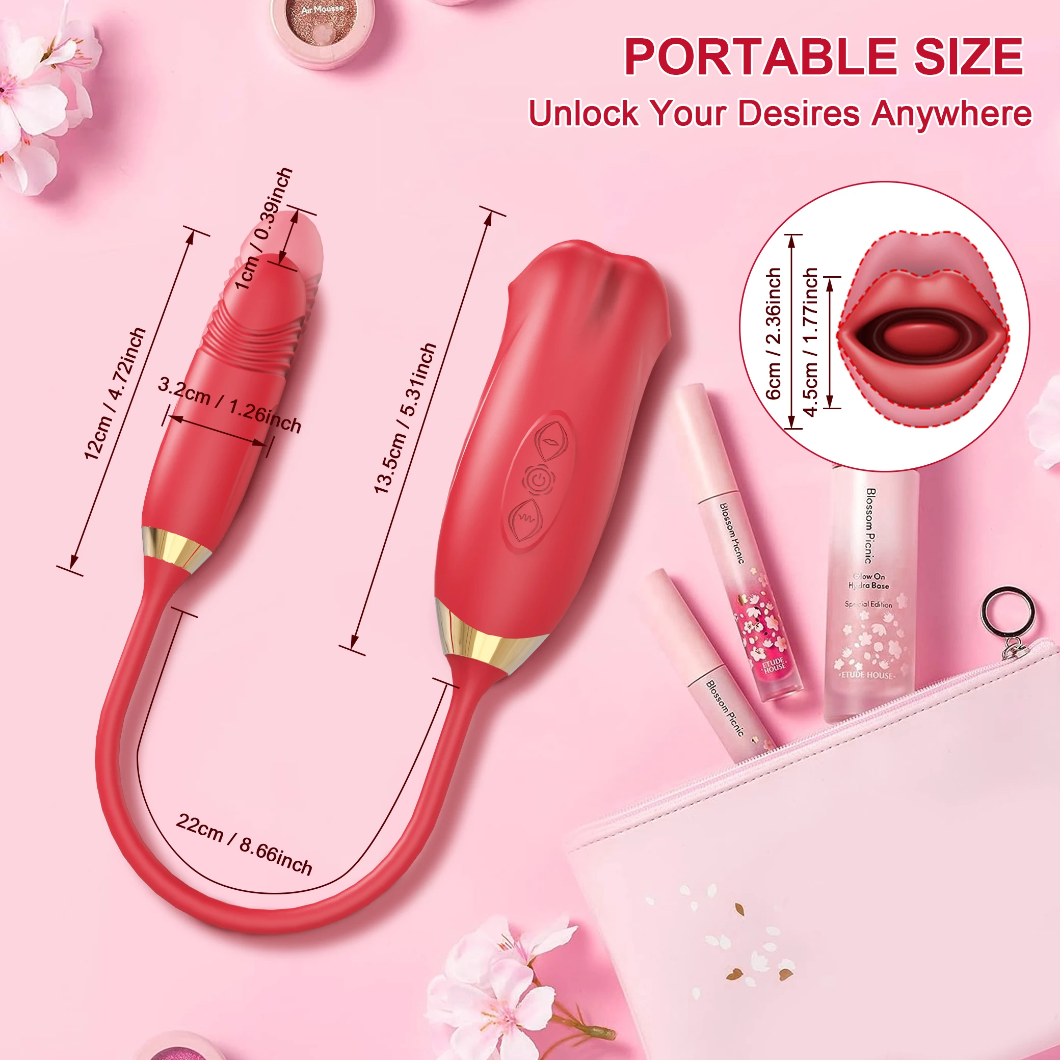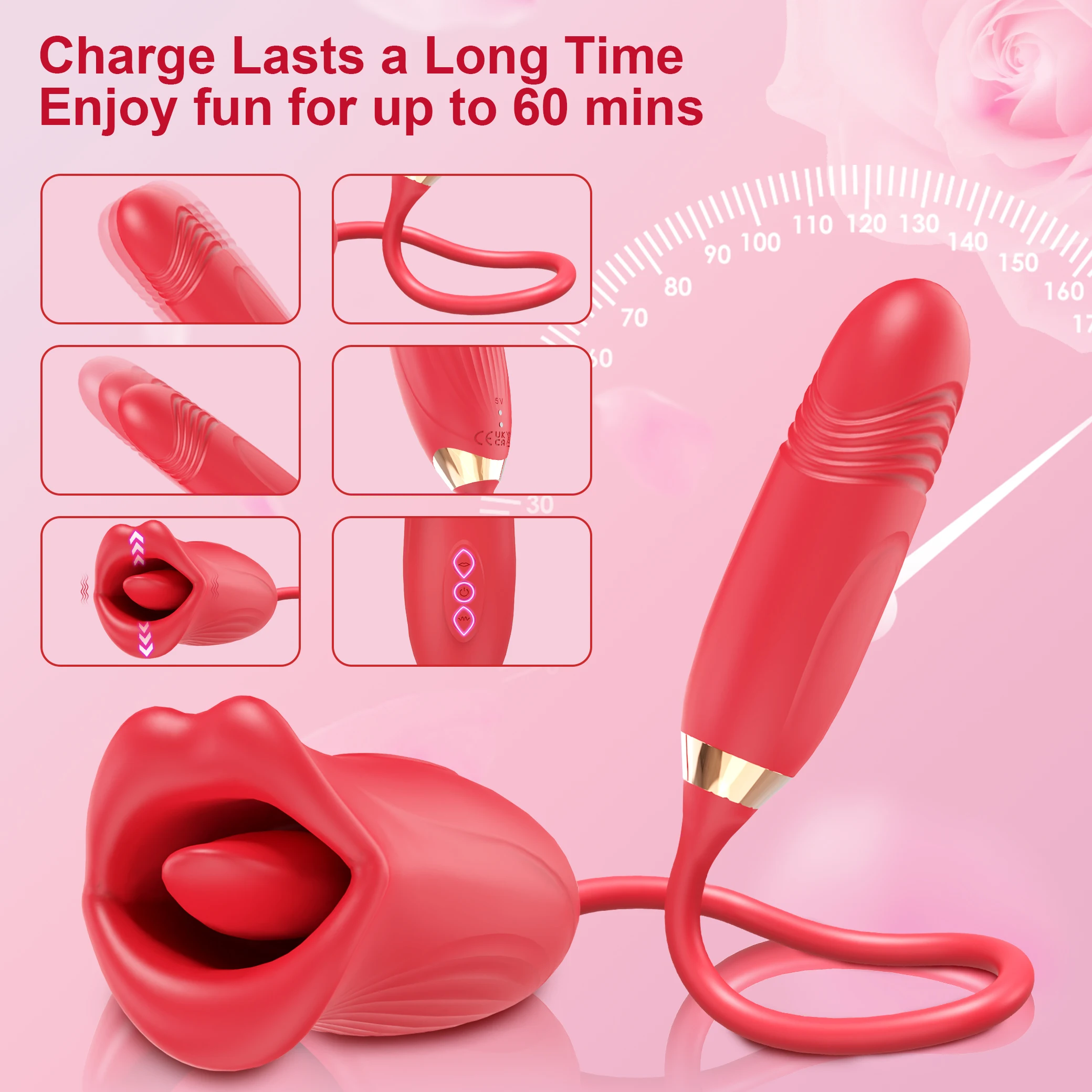 The soft silicone tongue flexes at 10 variable speeds and patterns, from gentle laps to rapid flicks, targeting the clitoris with pinpoint accuracy while the telescopic shaft thrusts in 10 synchronized modes. Combined, they simulate a partner’s mouth and fingers, triggering squirting-level intensity in solo play.