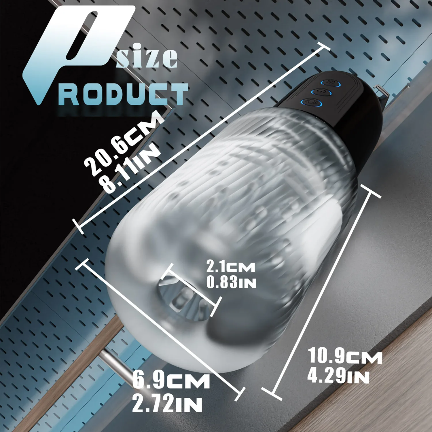 The device features adjustable suction that mimics oral sensations and multiple vibration modes for customized intensity. Simply select your preferred setting via the control panel, and the rotating auto-suction mechanism engages, stimulating the penis and glans for intense, hands-free orgasms with minimal effort.