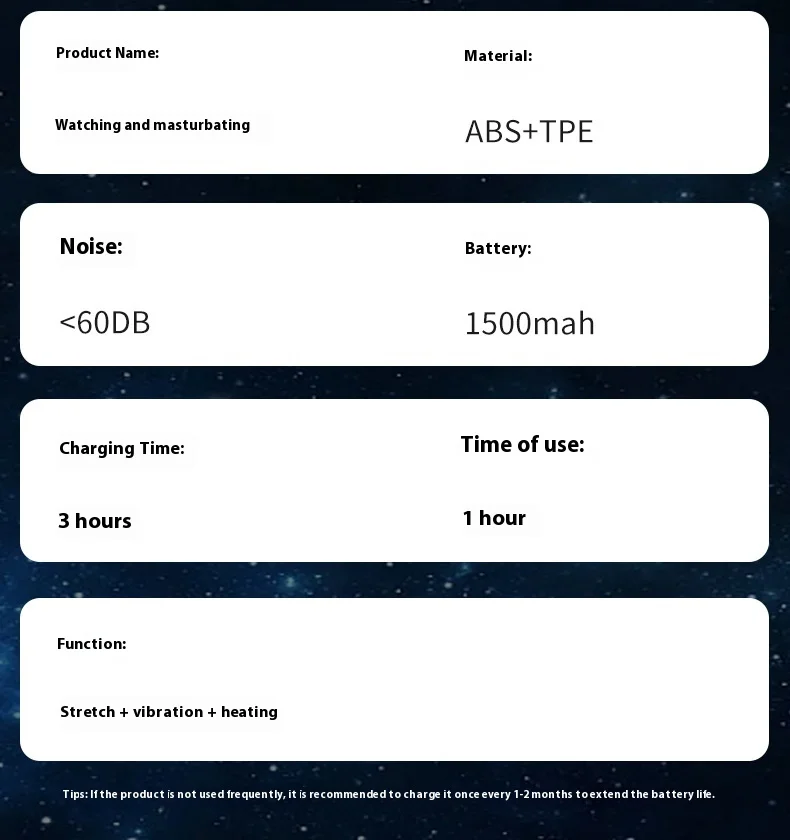 The heating function activates quickly via battery power, warming the inner TPE sleeve to a comfortable body-like temperature in minutes, enhancing realism during use. It maintains constant warmth throughout sessions, preventing cold starts that diminish pleasure, and integrates with automatic modes for sucking and rotation, allowing users to focus on enjoyment without manual adjustments, ideal for prolonged masturbation exercises.