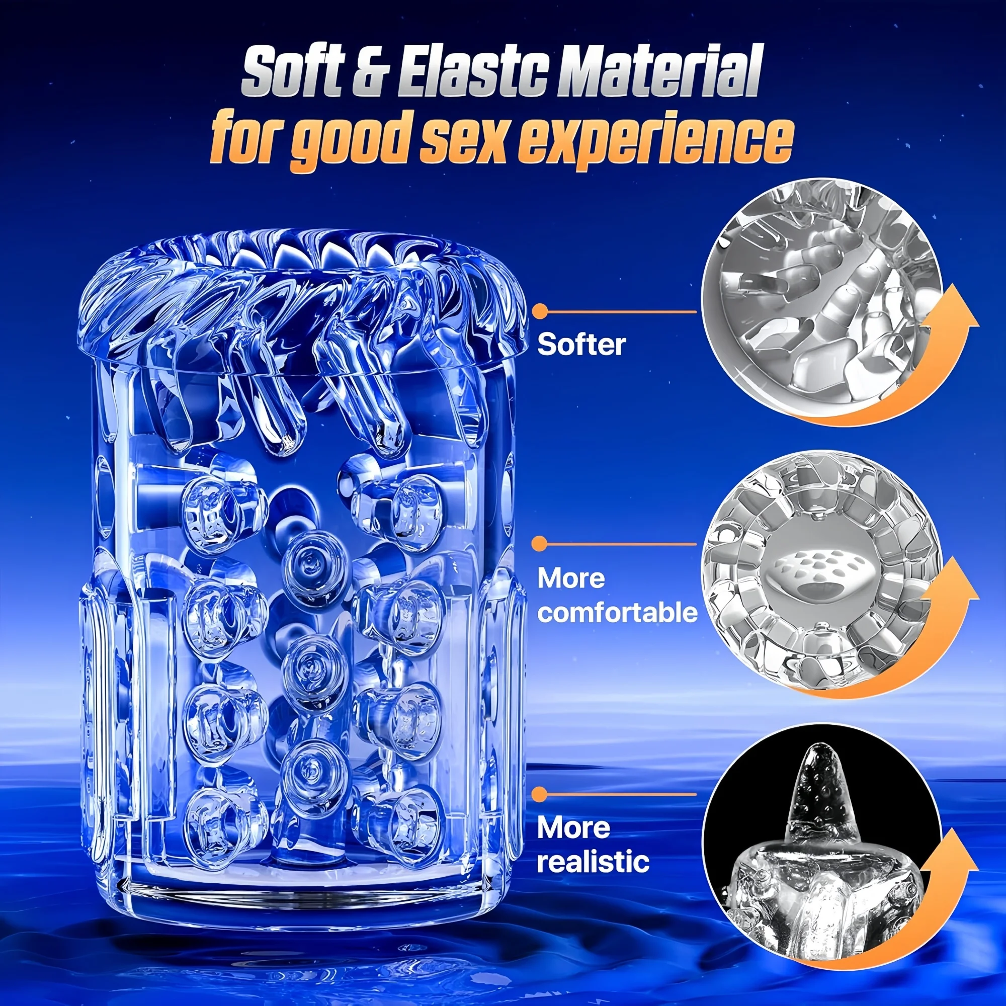 🫦3D Realistic Soft Textured Sleeve: Our mens sex toy for men is made of soft silicone. The male vibrator sex games has 3D textured channels. The plump granules can wrap around your dildo, this sex game provide tighter pleasure by sucking and rubbing