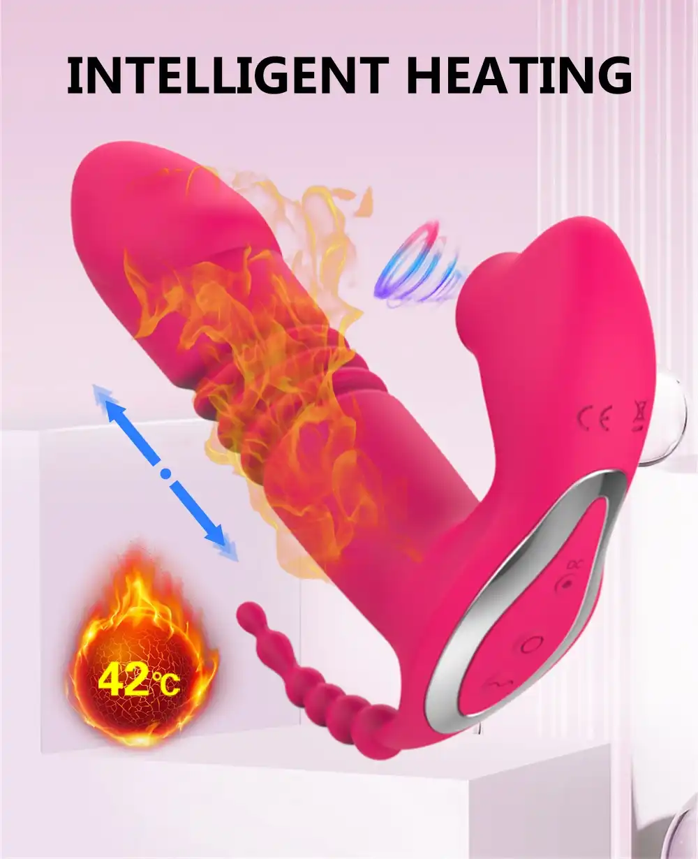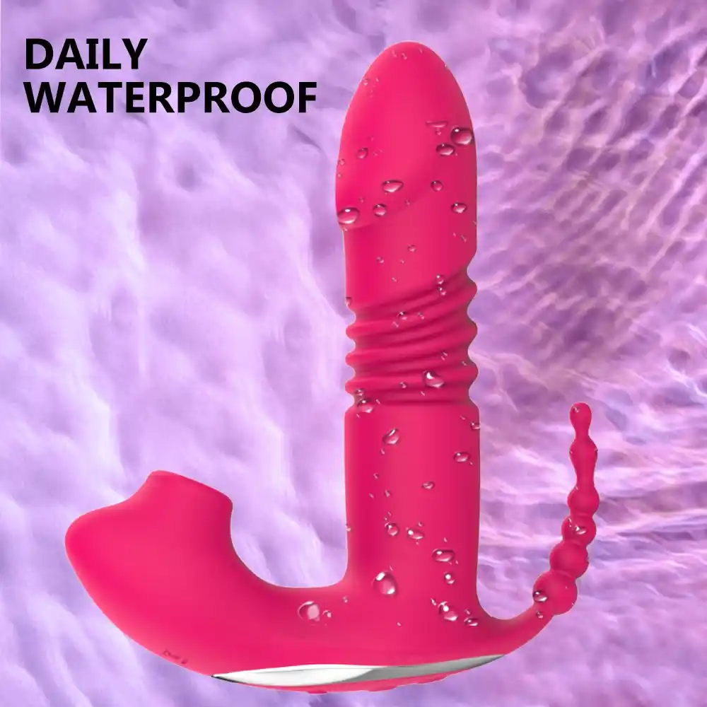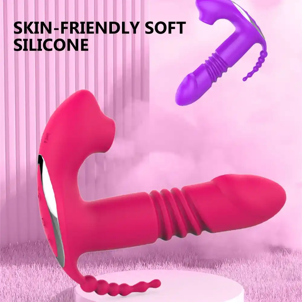 Feel the sucking mouth latch onto your clit with vacuum precision while the shaft thrusts 1 cm in and out against your G-spot and the anal arm pulses in rhythm. Within 3 minutes your thighs tremble, your breath catches, and a full-body blended orgasm crashes over you—quietly, secretly, anywhere.