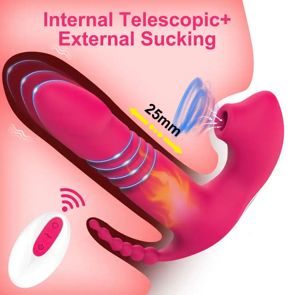 Sucking Clitoris Vibrator Women 3 In 1 Telescopic Wireless Control Clit Sucker 12 Speeds Female Wearable G-Spot Anal Stimulator