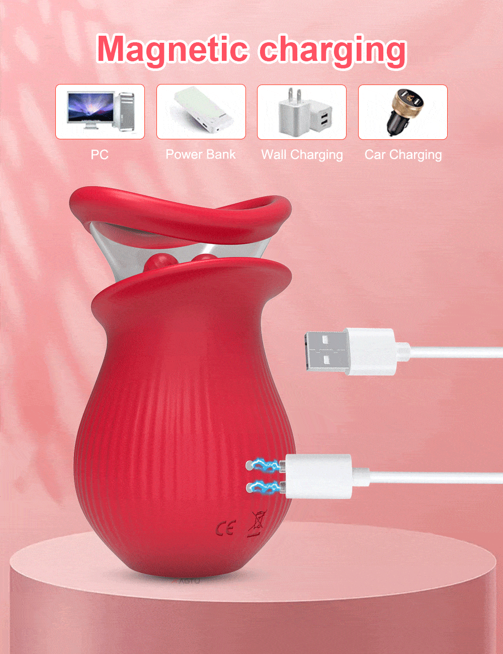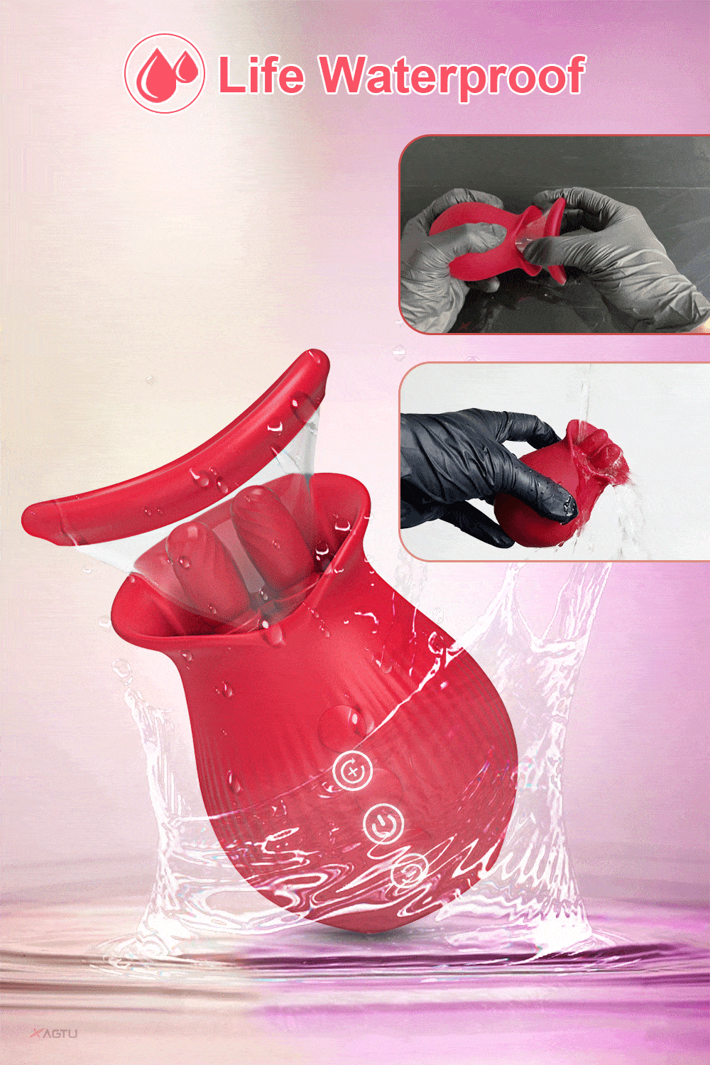 Life waterproof rating means full submersion in bath. Magnetic USB snaps on in 1 second, 90-minute charge gives 70 minutes of non-stop licking and sucking.