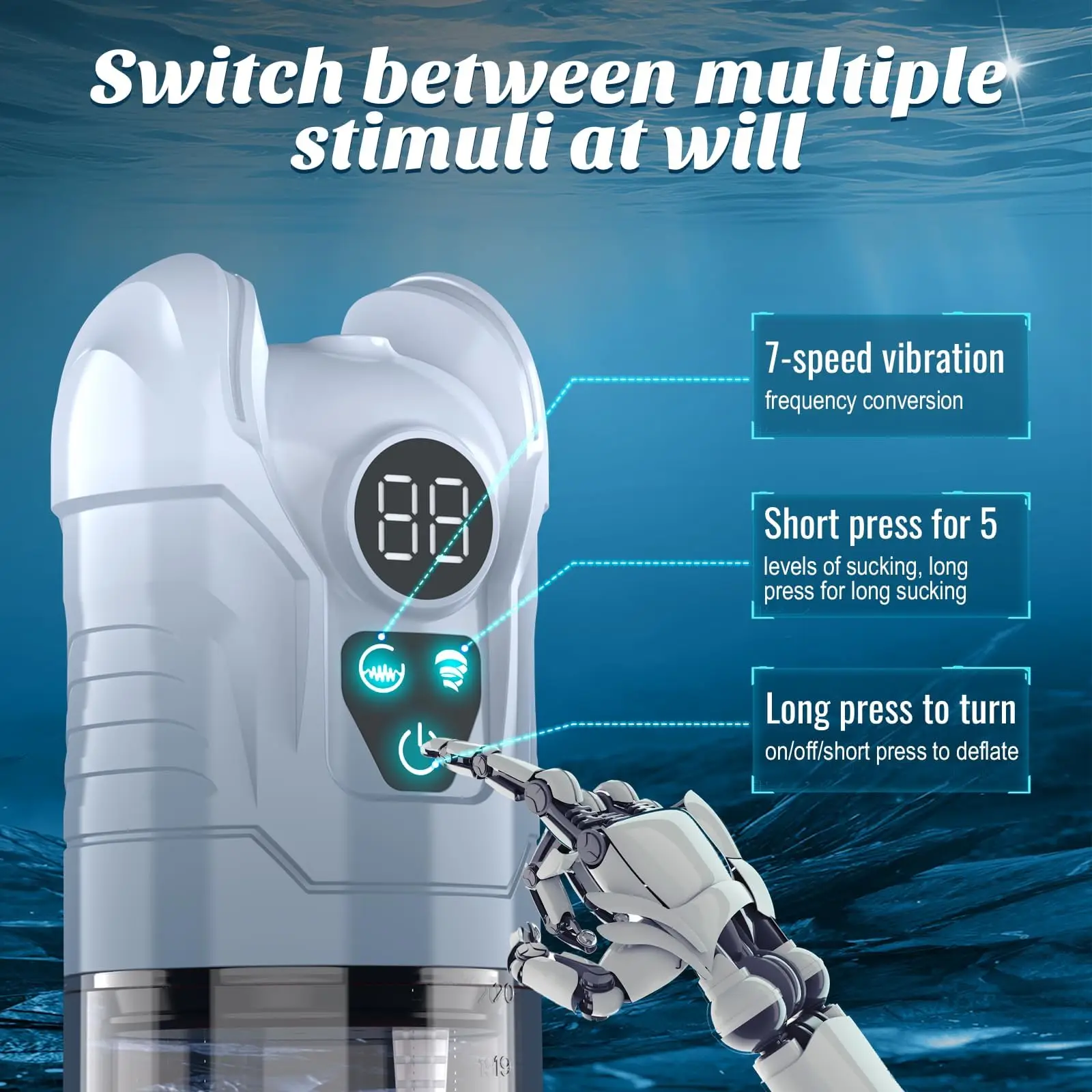 With 7 vibration patterns and 5 suction intensities, the quiet motor customizes stimulation for penile erection enhancement, ideal for adult sex toys for men 18+.