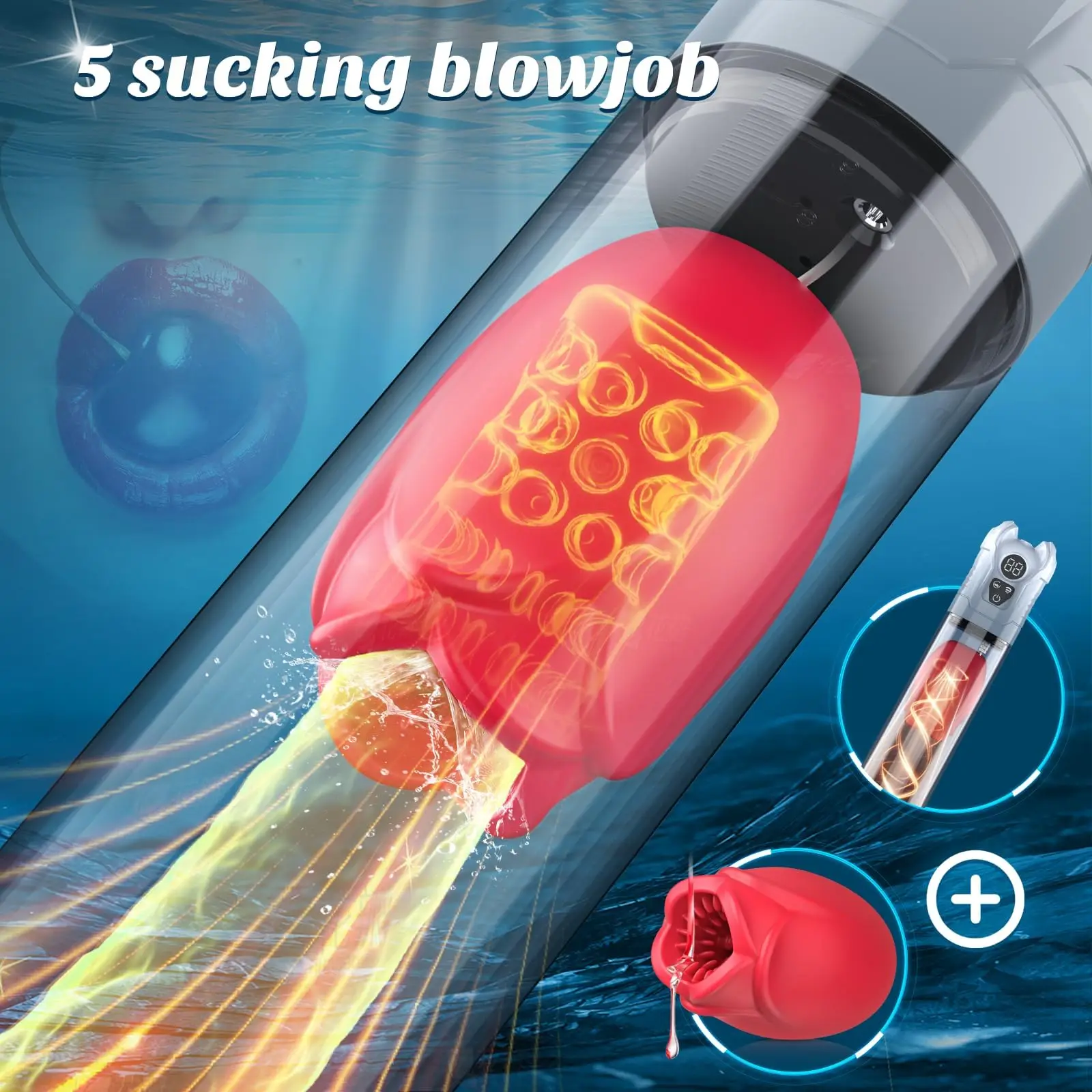 The rose-shaped inner cup features irregular textures and a mouth-inspired design, paired with vibrating suction for lifelike oral sensations in a masturbation cup.