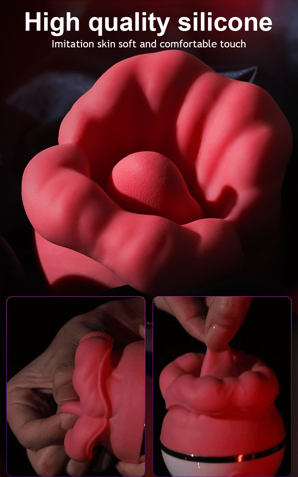 Tired of single stimulation from traditional vibrators? Our realistic rose mouth and tongue design provides authentic licking sensation, closely conforming to female sensitive areas, awakening 8,000 pleasure nerves for an experience just like a lover’s kiss!