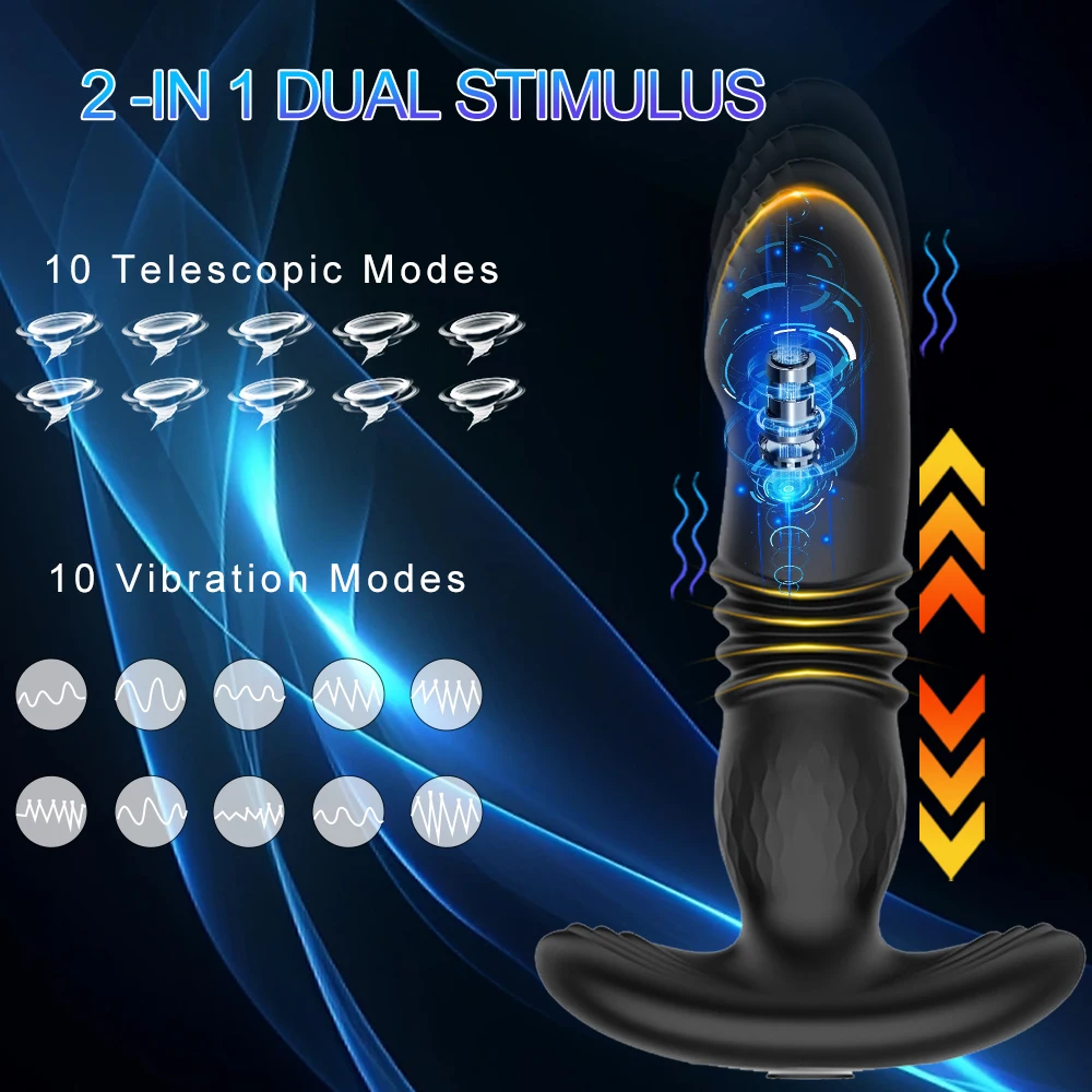 Experience unparalleled bliss as this wireless anal vibrator delivers rhythmic telescopic thrusts and vibrations, hitting your prostate or G-spot precisely, leading to mind-blowing orgasms, enhanced intimacy, and a healthier, relaxed body in discreet comfort.