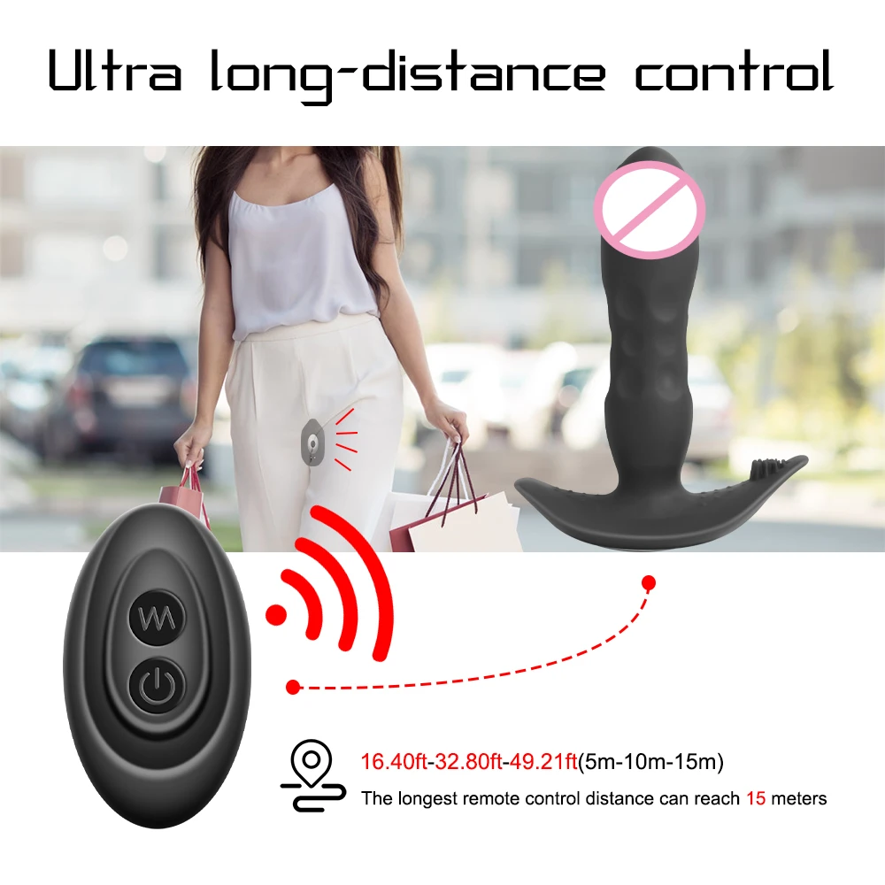 This wireless remote control telescopic vibrator offers 10 vibration modes and 360° rotation, targeting prostate for health benefits and explosive ejaculations in men.
