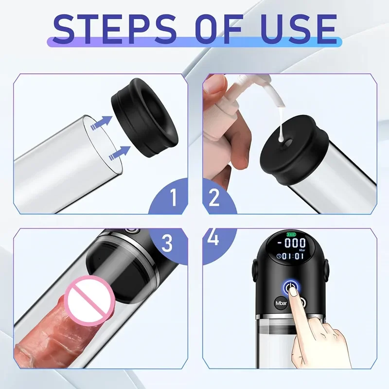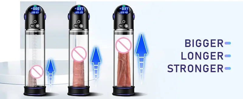 Negative pressure creates a vacuum that draws blood into the penis, expanding tissues for temporary swelling that becomes permanent with regular use. The LCD display tracks levels to prevent overexertion, starting low and building intensity. Integrated stroking mimics masturbation for added stimulation, improving endurance and ejaculation control. Sessions last 10-15 minutes daily, with lubrication recommended for comfort, leading to measurable enlargement over weeks while providing enjoyable, hands-free operation for solo adult fun.