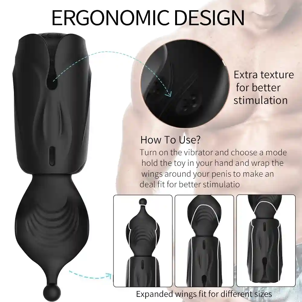 Most male sex toys only vibrate without realistic wrapping or oral sensation, leaving you unsatisfied. This automatic oral climax simulator mimics deep blowjob suction with expanding wings, textured nubs, and adjustable medical silicone sleeve that fully envelops and pulses around your penis—just like a real mouth—for mind-blowing realistic pleasure.