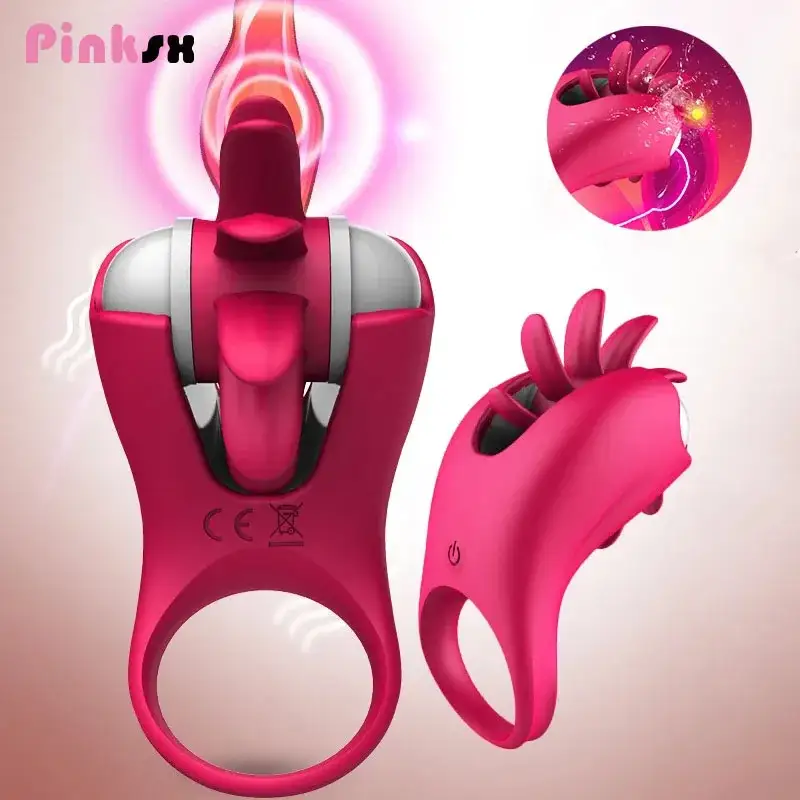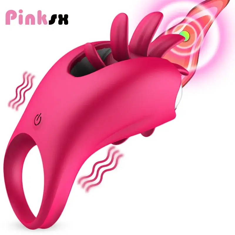 Penis Cock Ring Vibrator For Couple Tongue Licking Vagina Clitoris Stimulate Rotation G-Spot Nipple Massage Lock Rings Sex Toy