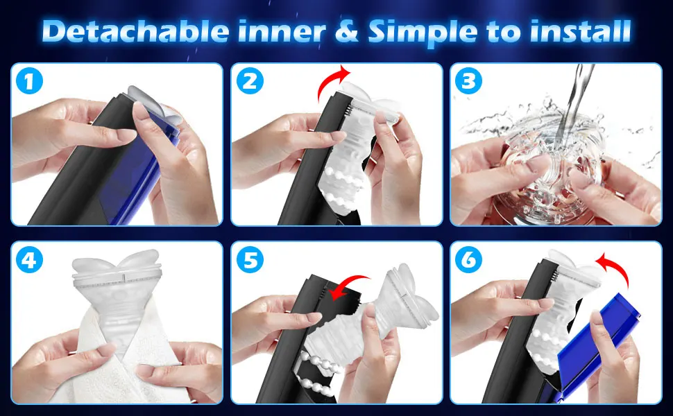 Toys for adults is rechargeable with the included USB charging cable. In addition, couples vibrator adult toy allows you to easily switch modes while holding the cup sexual toys. Long press the power button of couple sex toys for three seconds to turn on and off. Cleanup of sexy toys is also easy and fast and sex novelties assembly and disassembly straightforward.