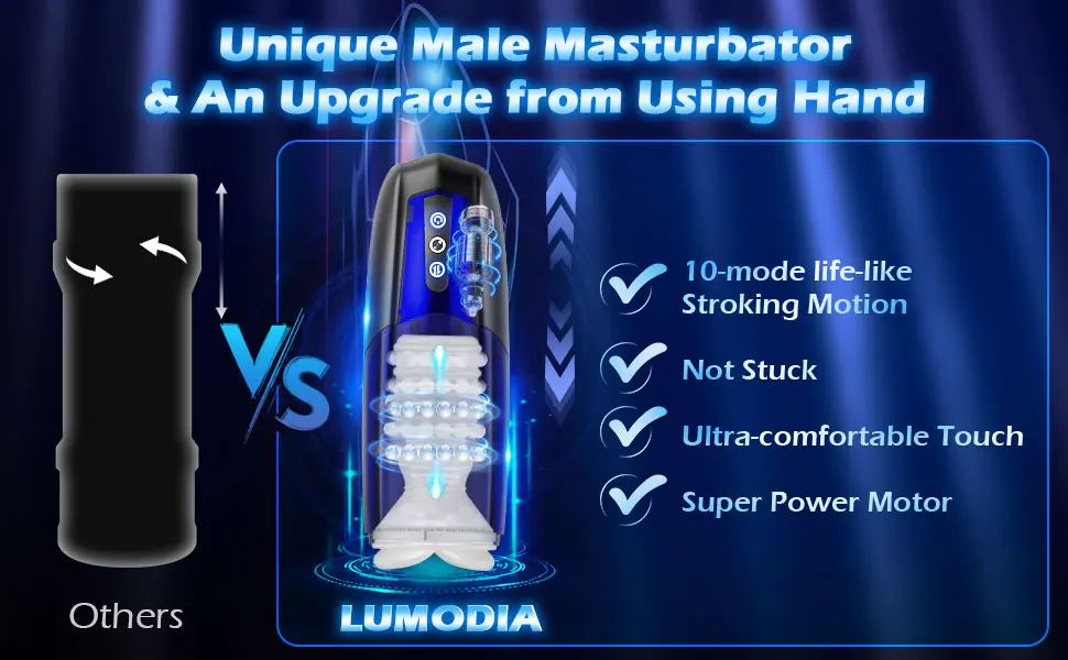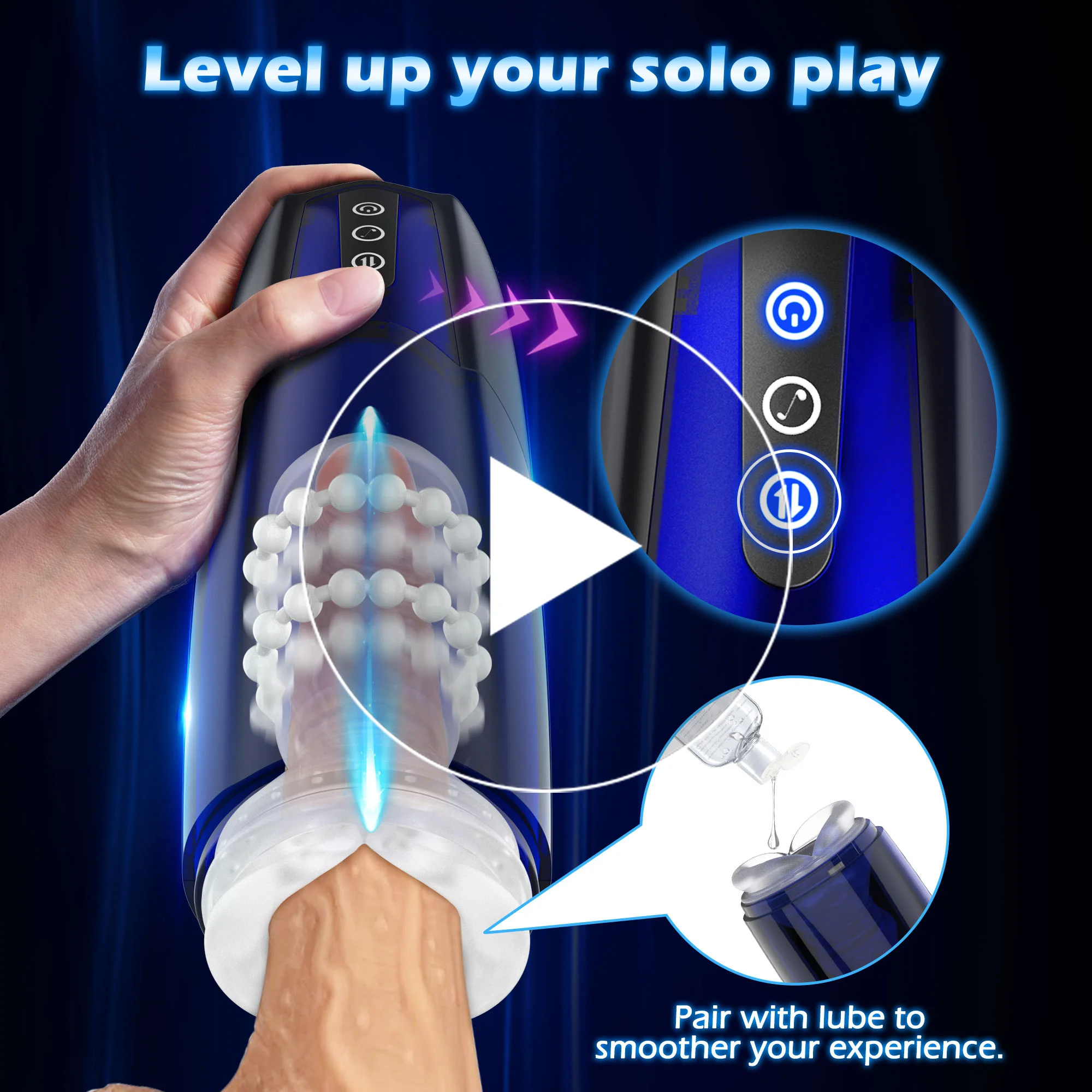 This male masturbator stands out with 10 dynamic stroking modes powered by a robust motor, offering varied sensations from gentle to intense. The soft TPE sleeve, lined with textured bumps, mimics realistic friction for enhanced stimulation. Certified with CE standards, its medical-grade silicone and TPE materials ensure safety and comfort for prolonged use.