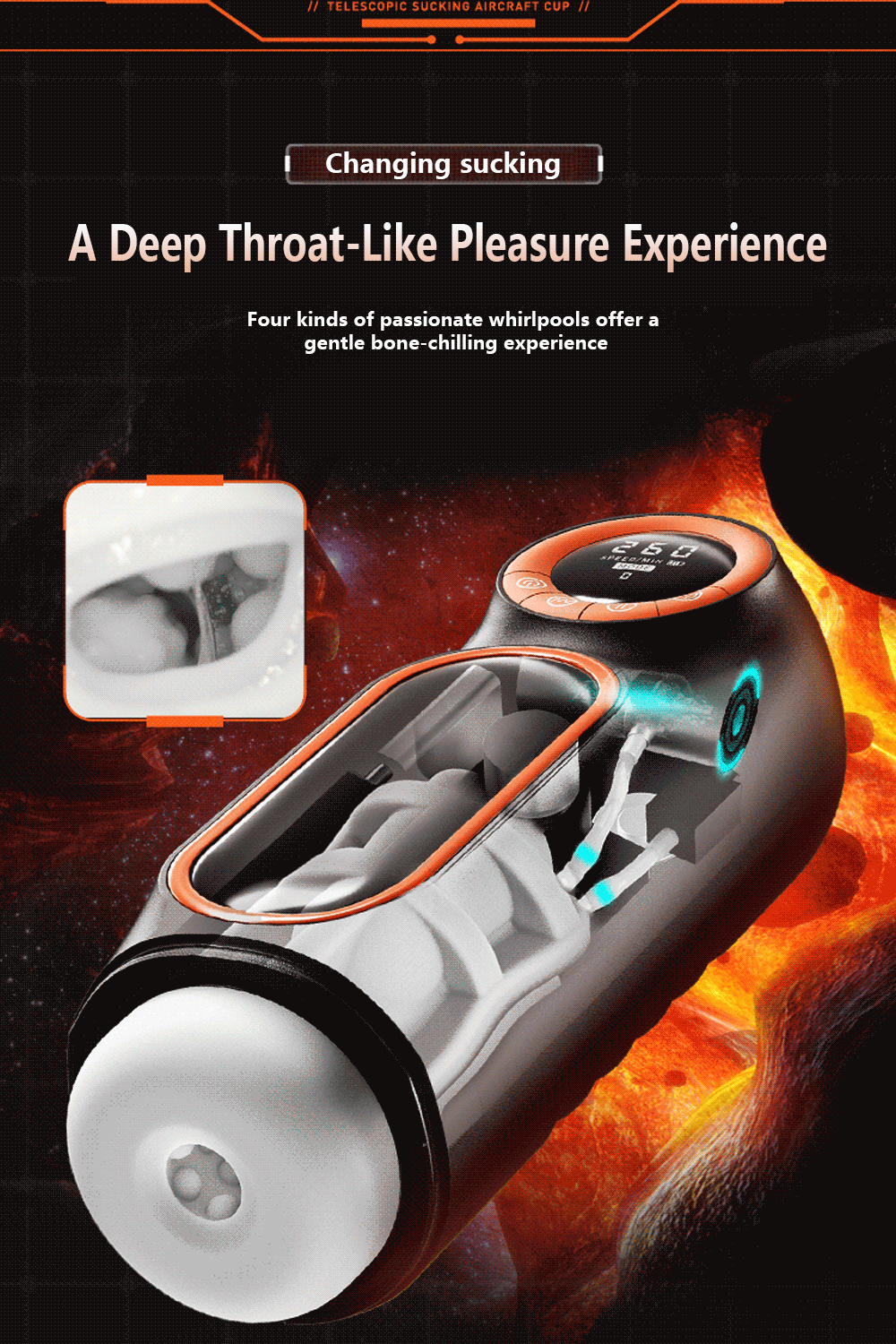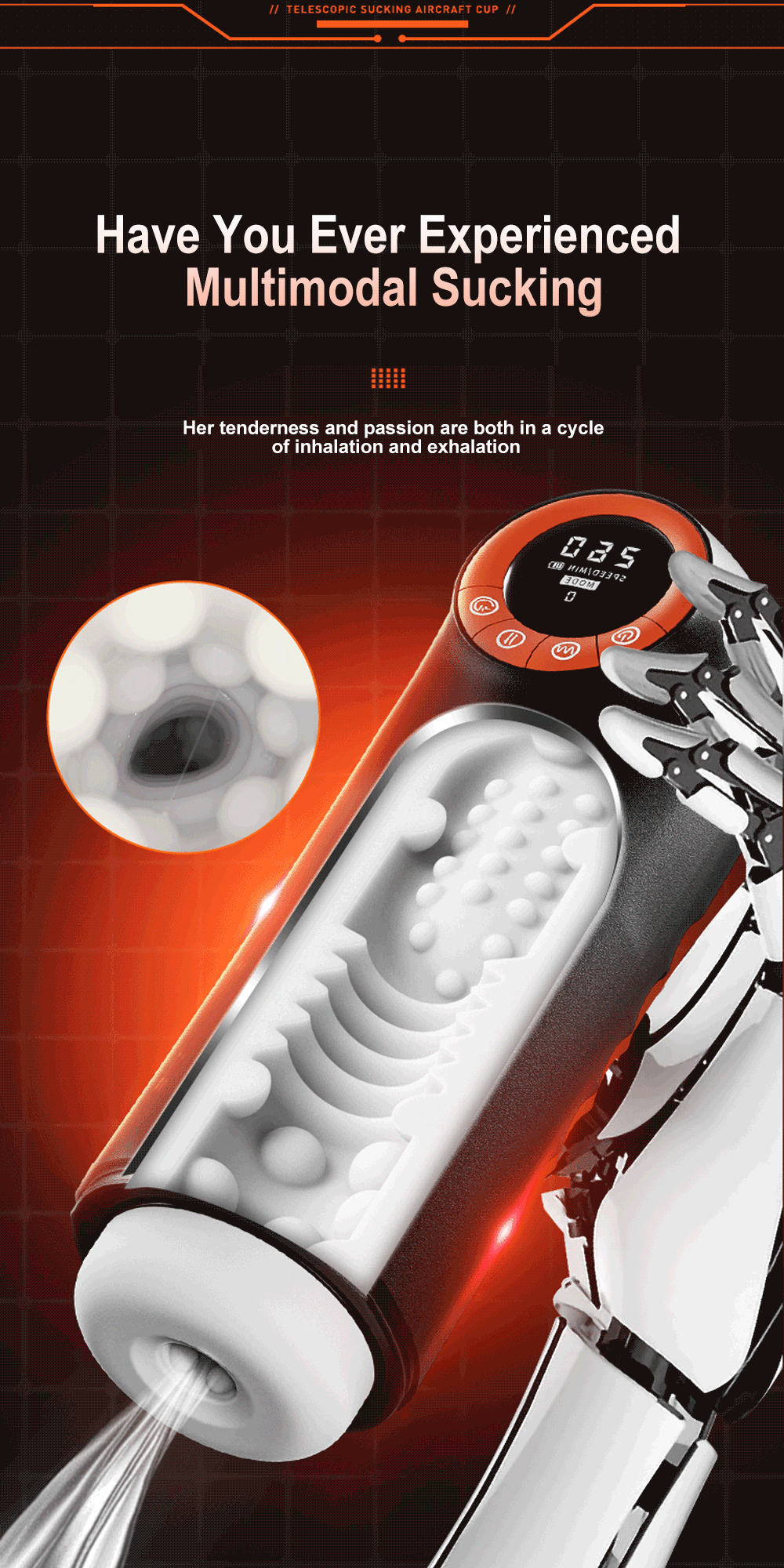 It combines four powerful functions in one cup: 7-level telescopic thrusting, 7-level vacuum sucking, multi-frequency vibration, and seductive intelligent voice that moans in sync with your rhythm. The inner sleeve is made of ultra-soft TPE with realistic vaginal texture for lifelike penetration.
