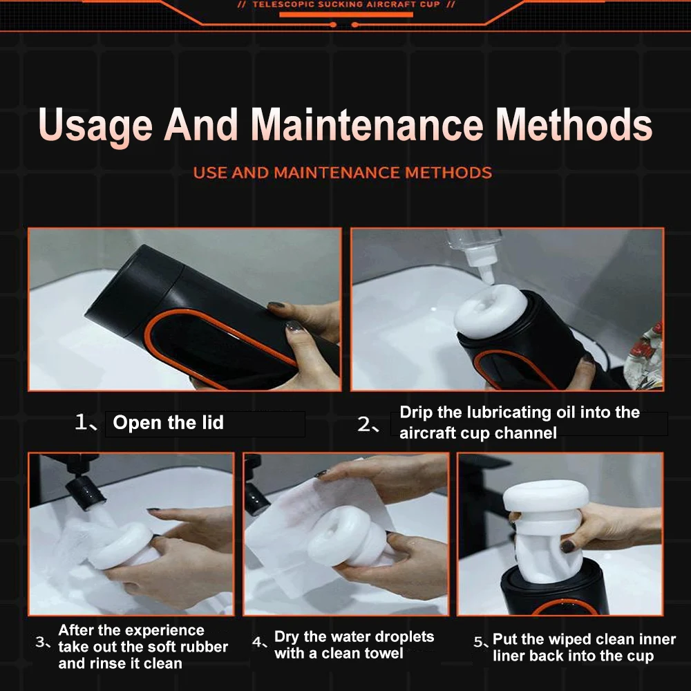 4. When cleaning deeply, you can use shower gel, hand sanitizer or soap to clean it and rinse it; 5. After cleaning, the moisture on the outside and inside the channel must be wiped dry to ensure that the soft glue of the product is clean and dry. Apply a talcum powder or utensil protection powder, put it back into the cup body, place the colloid and close the cup body cover back to the position;