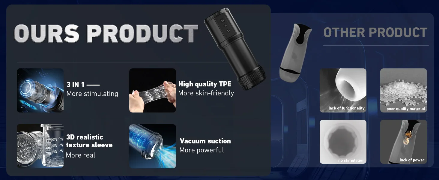Unlike simple strokers, it combines sucking, thrusting, rotating, and vibration in one device for true multi-sensory pleasure. The realistic inner texture and portable 26×9.2cm size outperform larger toys, while the included battery and quiet motor make it perfect for daily use without hassle.