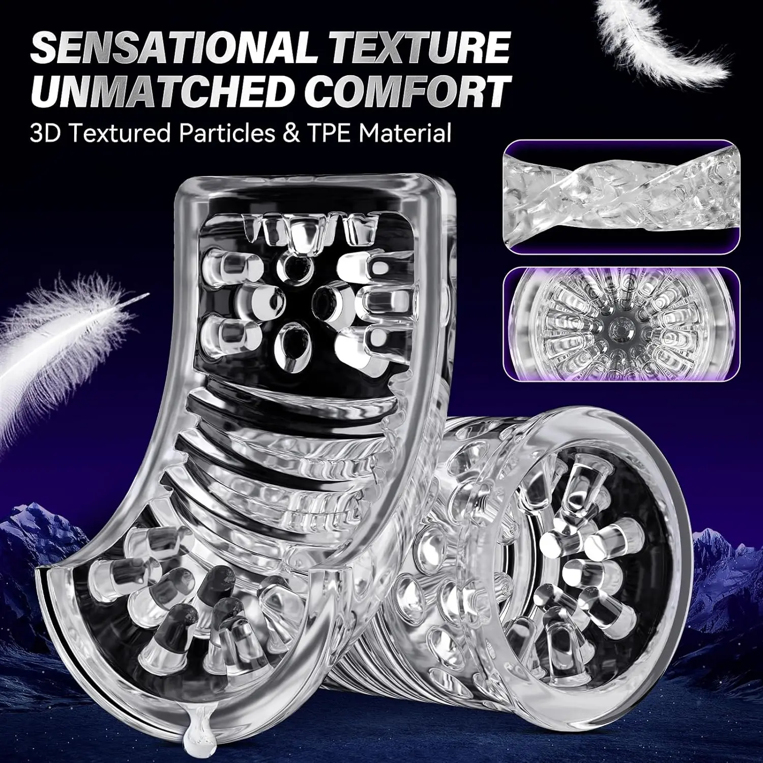The sleeve is made of dual-layer medical silicone with ultra-soft realistic skin texture and tight ribbed canal. The entrance automatically stretches to fit any girth, while the inner particles and folds massage every inch exactly like a real aroused vagina.