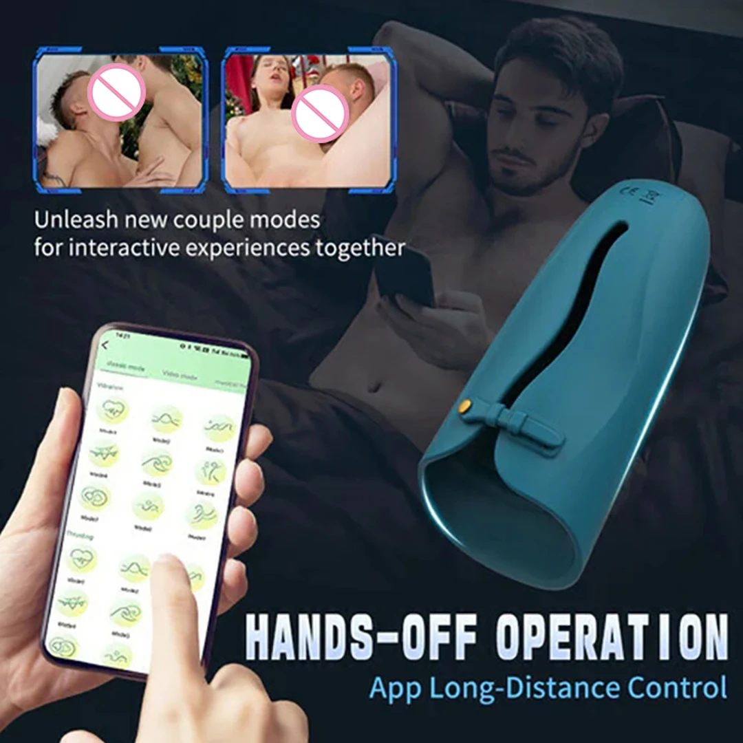 Penis Enlargement Glans Trainer Remote Control Vibrator 9 Frequency Pulse Slapping Penis Stimulator App Couple Sex Toy Male Masturbator Stamina Builder