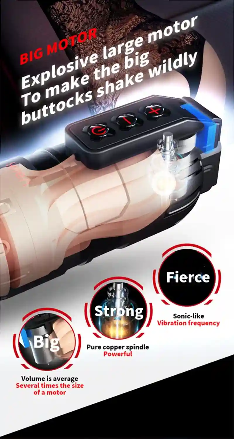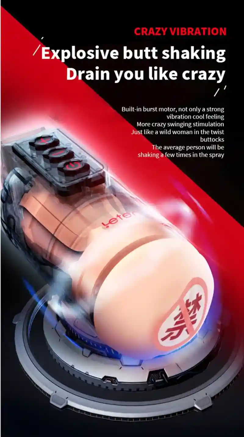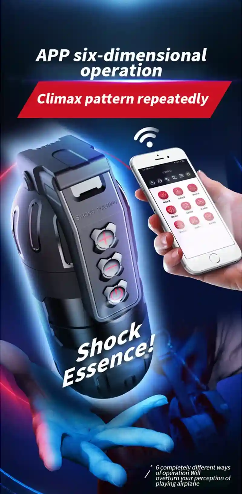 Hand-grenade shape with military-grade grip, built-in rechargeable battery, 9-level sucking + vibration controlled by smartphone app anywhere in the world, ultra-tight fleshy silicone sleeve that wraps 360°, one-click orgasm burst mode, and fully waterproof design.