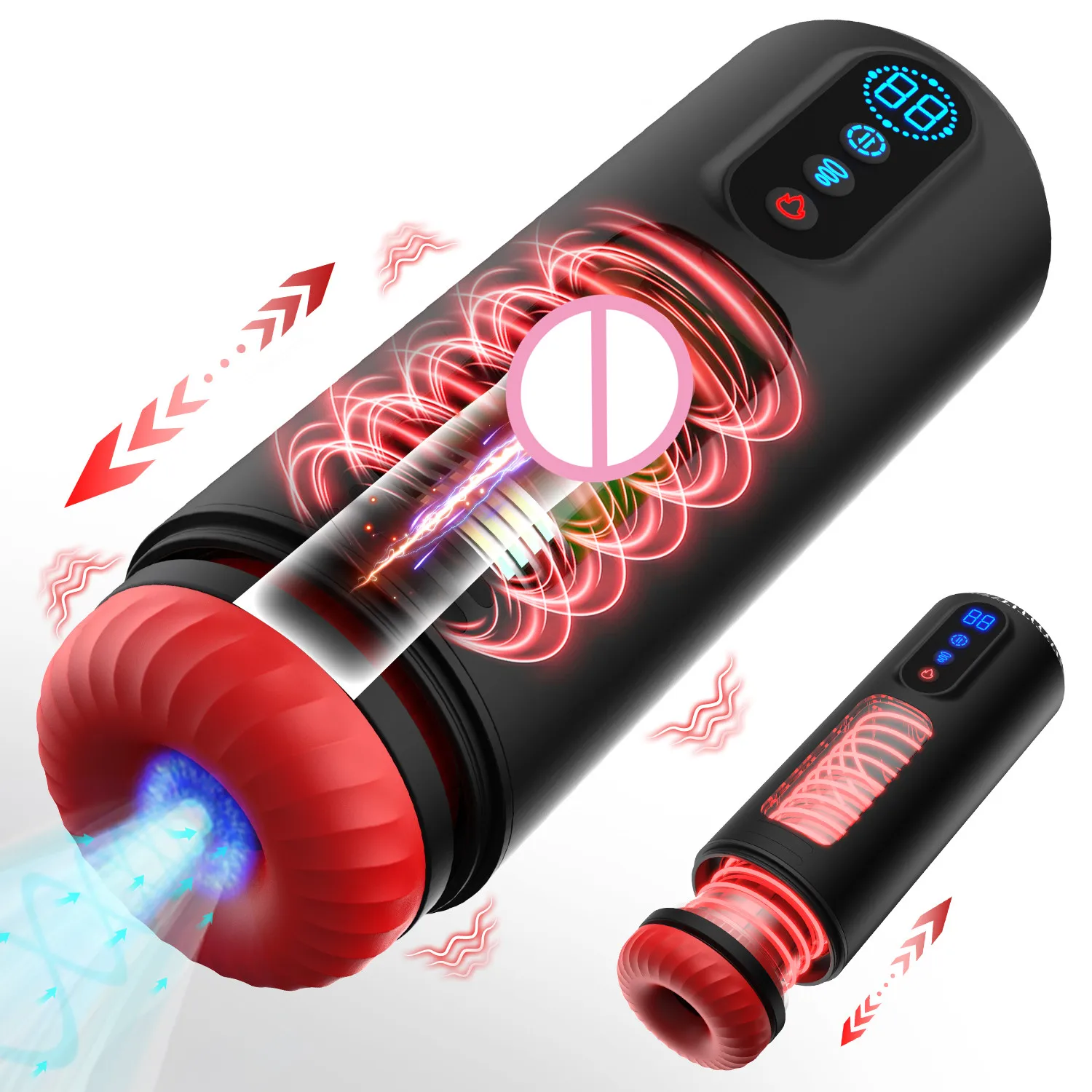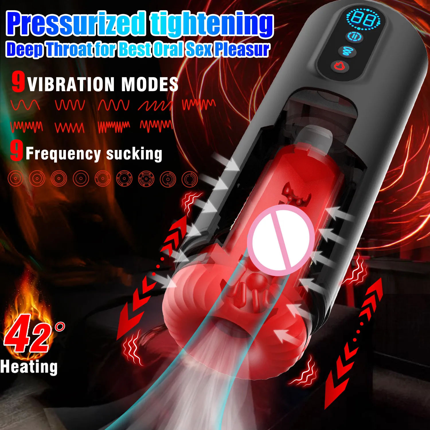 Unlike basic masturbators, this battery-powered thrusting piston oral sex machine includes deep throat sucking, adjustable heating voice, and silicone soft sleeve for superior stimulation and satisfaction in adult toys for men.