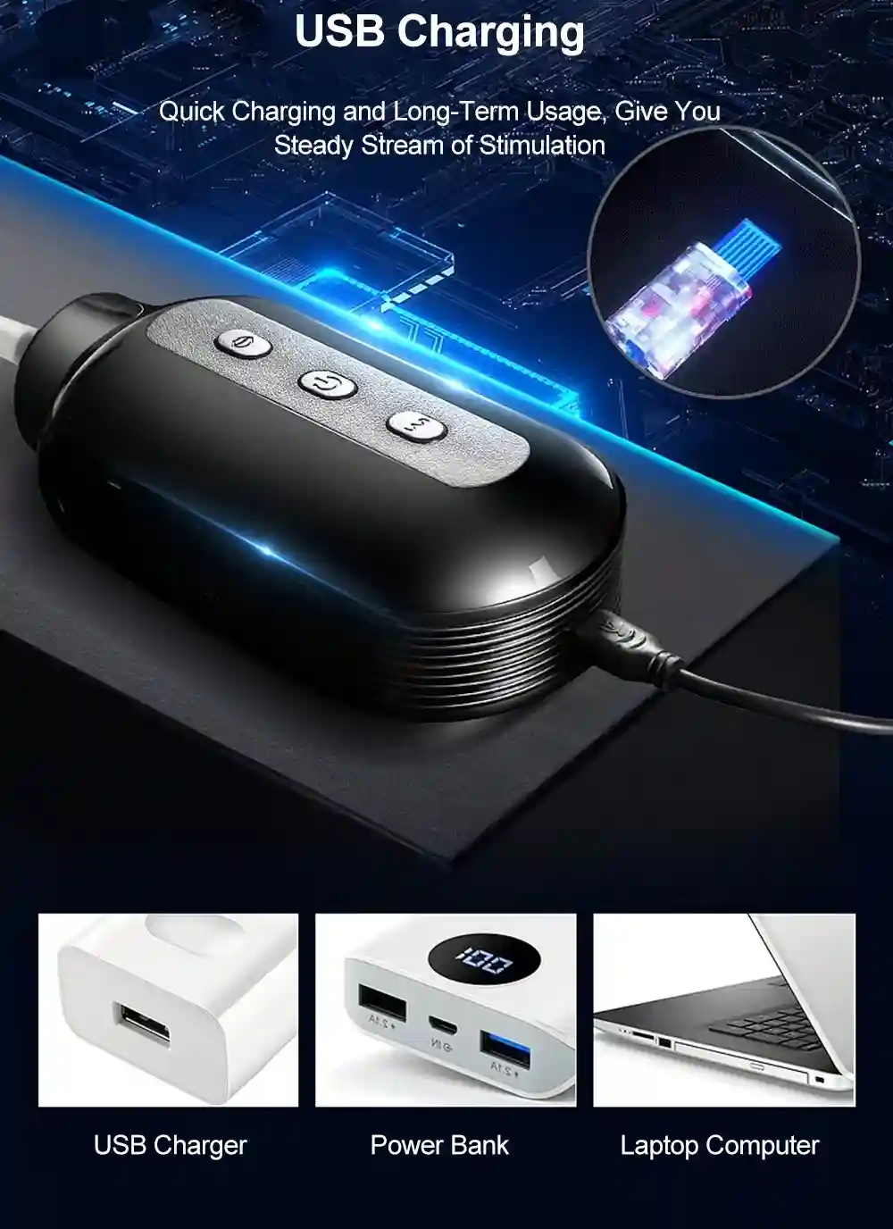 Is This Sucking Masturbator Rechargeable or Battery-Powered? Built-in high-capacity USB rechargeable battery, 60 minutes charge gives 90 minutes non-stop play, no more dead batteries.