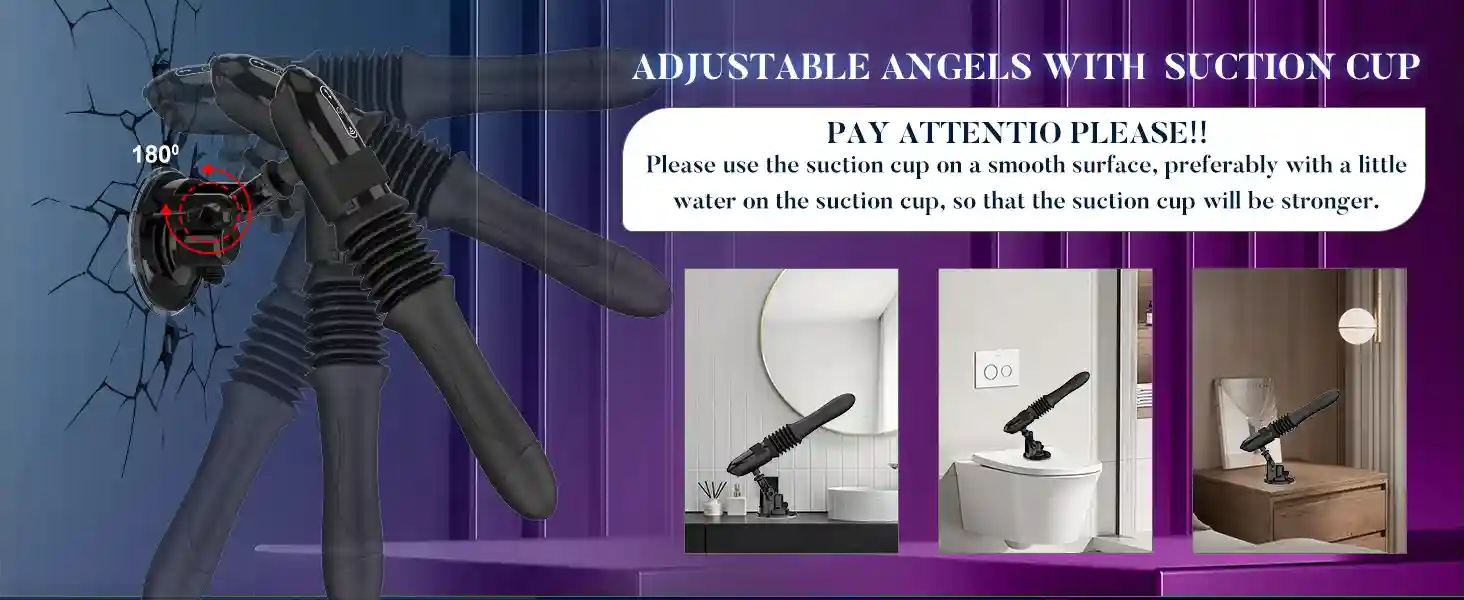 💐—Our sex machine is equipped with a powerful suction base and an easy-to-adjust design, enough to suit all your positions and preferences. All you need is a smooth, flat surface to hold it on. Adding a little water to a smooth surface can make the suction stronger. Choose a remote control model for added convenience, and the only limit to your joy and fun-filled nights is your imagination.